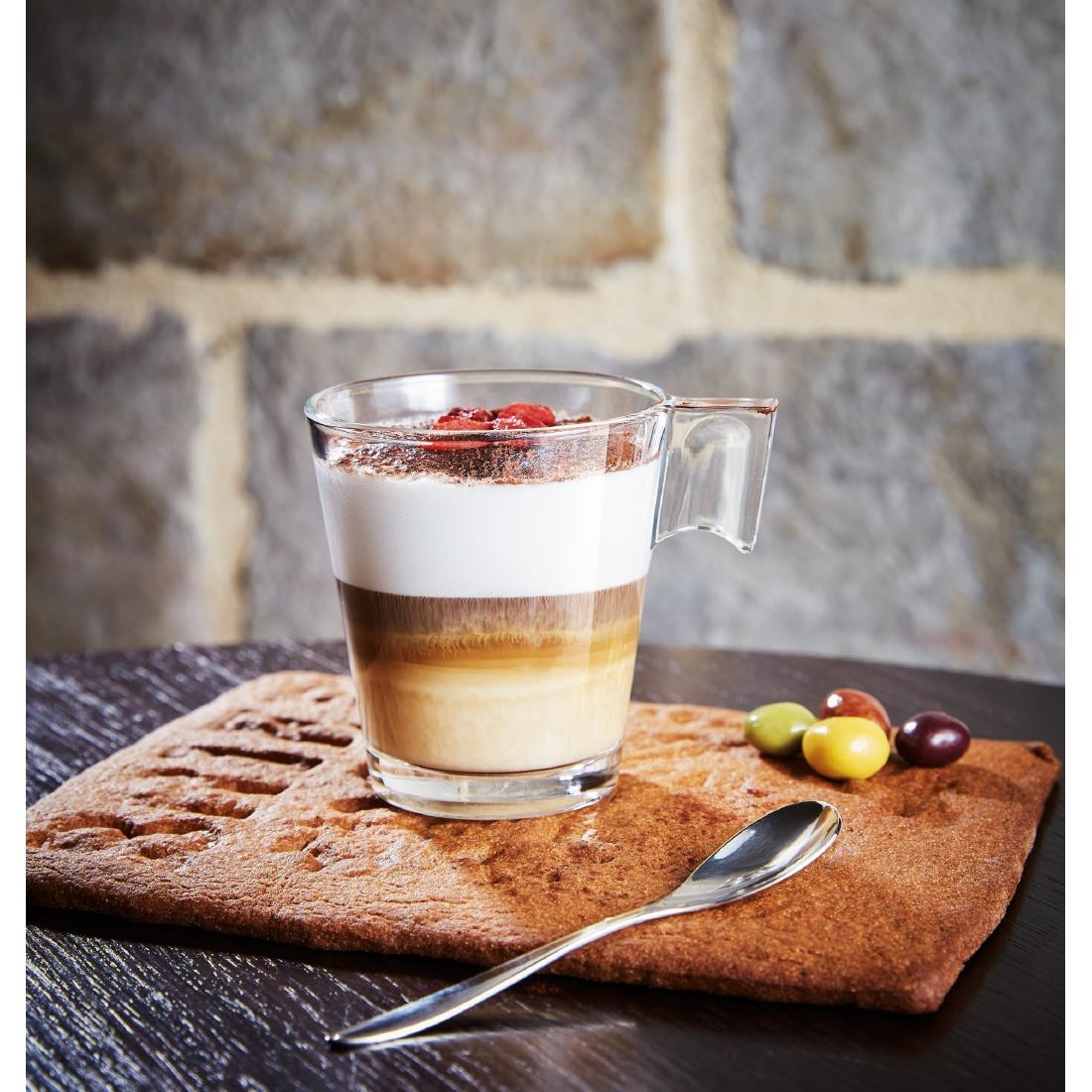 Arcoroc’s Aroma 220ml cups are a smart addition to any bar or restaurant. The V-shaped body and holeless handle give them a clean, modern look, while their stackable design makes them easy to store and perfect for saving space behind the counter.