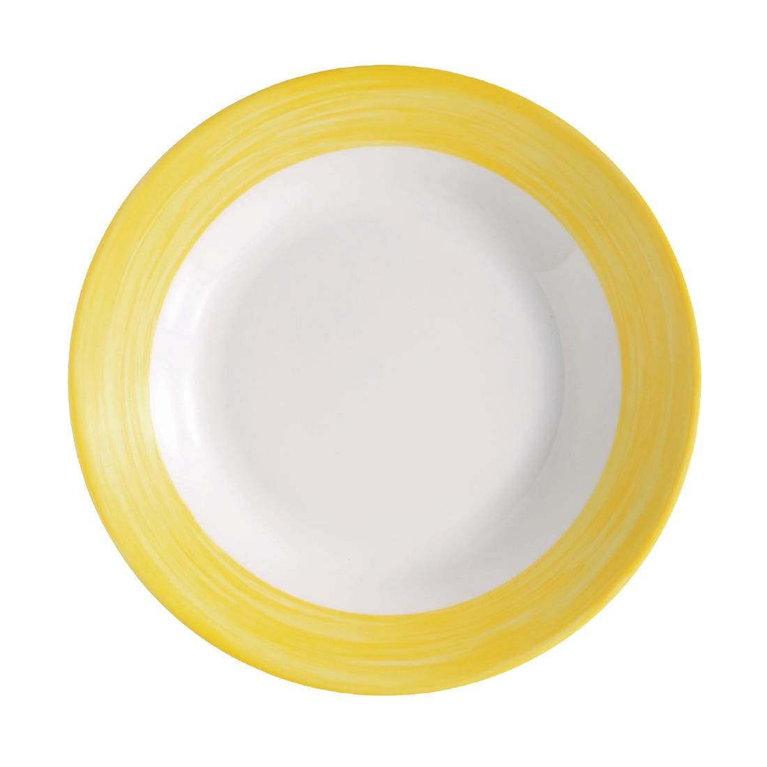 Supplied in a pack of 12, Arcoroc Brush soup plates are safe for both commercial dishwashers and microwaves, making them a reliable and convenient choice for fast paced foodservice operations.
