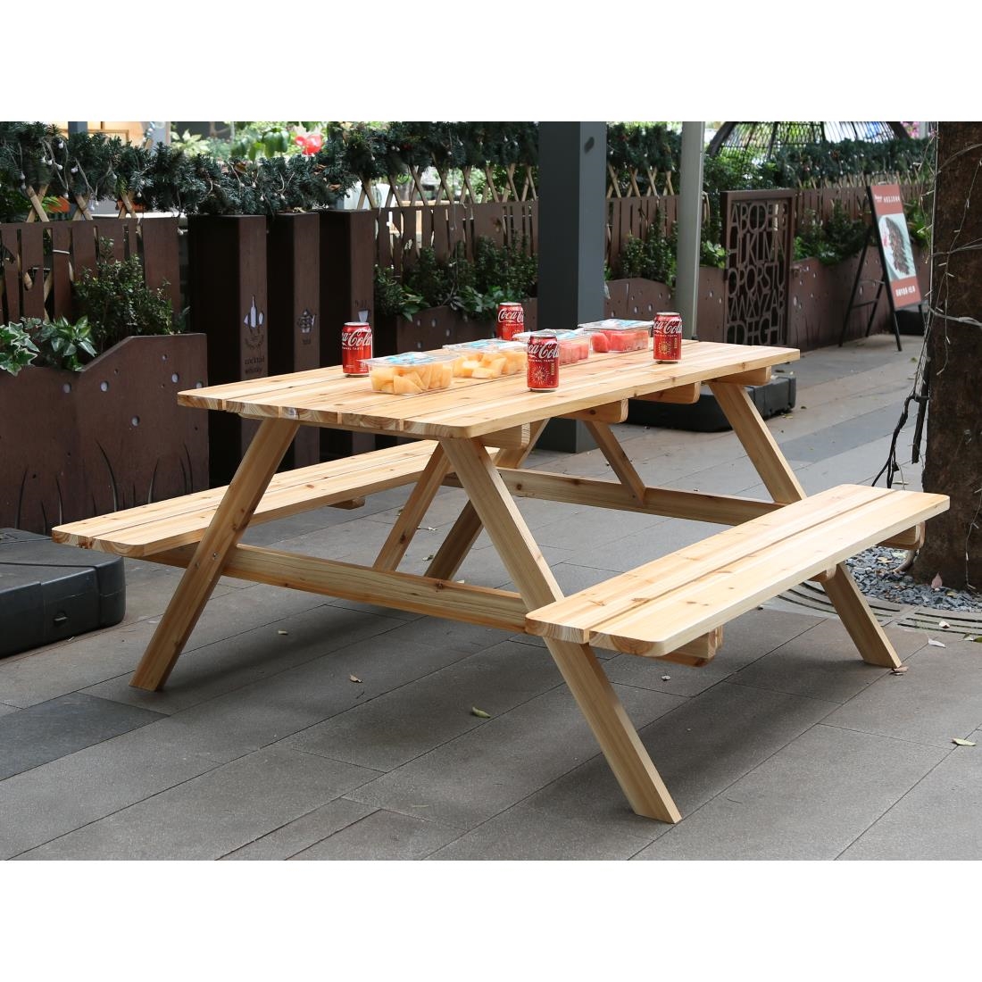 Delivered as a flat pack for simple assembly, the Bolero Elements wooden picnic bench is both practical and versatile. Its sturdy design supports hot plates up to 180 deg C, while the stain and scratch resistant surface ensures easy cleaning and long lasting appeal. For a personalised touch, the natural wood finish can be customised with two coats of water based UV resistant paint, allowing you to tailor it to your space.