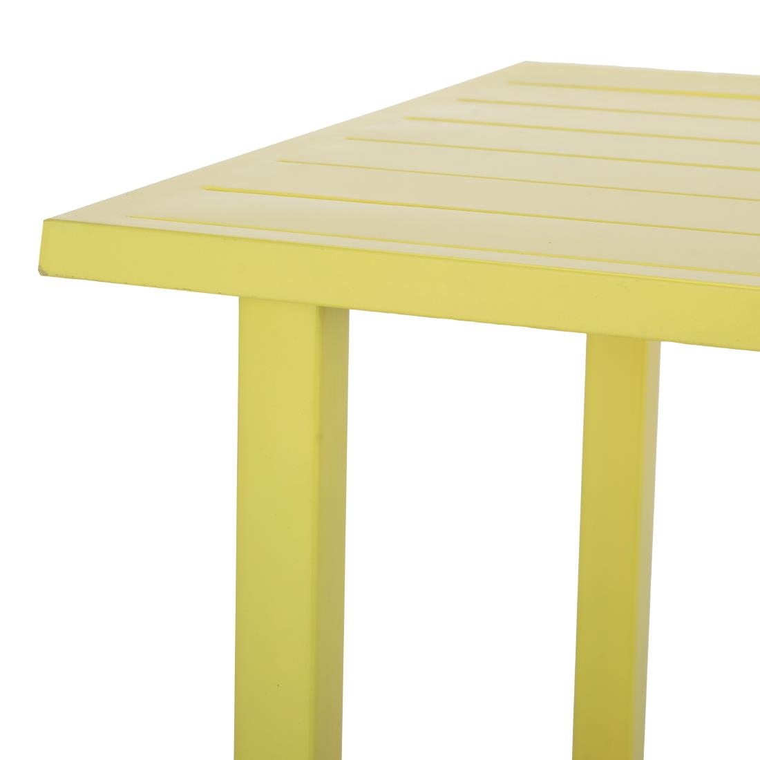 Commercial-grade construction supports year-round use in demanding environments. A strong steel frame with a smooth powder-coated finish helps protect against rust, fading and general wear, keeping the table looking fresh for longer. The limoncello yellow finish adds an uplifting, Mediterranean-inspired feel that instantly brightens any setting.