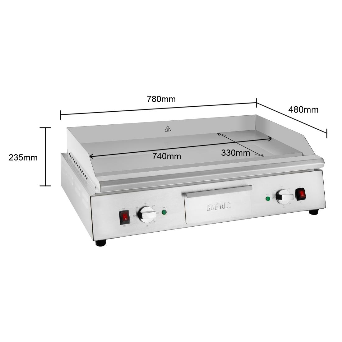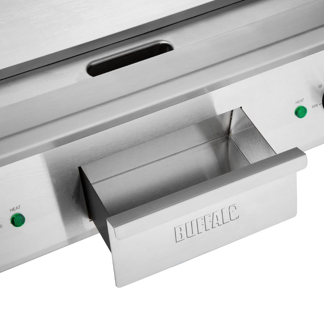 Designed for performance and convenience, the griddle helps to simplify your kitchen workflow. Thanks to its wide temperature range of 50 deg C to 300 deg C, the griddle gives you the precision to perfectly prepare a huge variety of menu items without having to move food between appliances. After service, cleaning is made quick and effortless thanks to the removable oil collection drawer, ensuring you can maintain a hygienic station with minimal effort. For safety, the Buffalo griddle also includes built-in overheat protection, giving you valuable peace of mind during busy shifts.