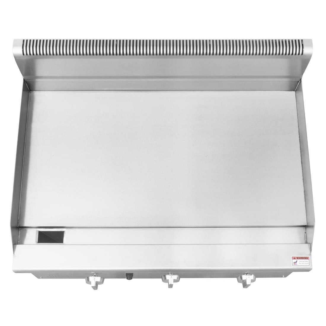 Built for everyday high-output service, the powerful Buffalo gas griddle 900mm delivers fast, even heat across a heavy-duty 15.8mm thick polished steel plate. Three powerful burners (22.5kW total) create independently-controlled heat zones, so chefs can sear, saute and hold food at the same time with consistent results. Flame failure protection and battery-operated impulse ignition support safe, reliable lighting throughout busy shifts.