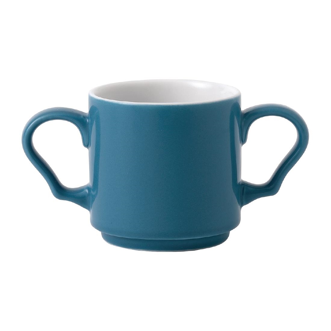 These Future Care 284ml double-handled mugs are finished in an attractive blue glaze and made from high-strength vitrified ceramic to withstand the demands of commercial use. The dual handles provide extra stability and support for users with limited grip strength.