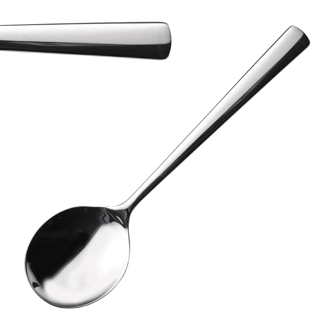Boasting a sleek, minimal silhouette with a refined angular design, these Evolve soup spoons are crafted to complement Churchill’s ceramic tableware collections. Each piece in this pack of 12 is manufactured from quality 18/10 stainless steel with a highly polished finish, offering excellent resistance to corrosion, staining and daily wear.