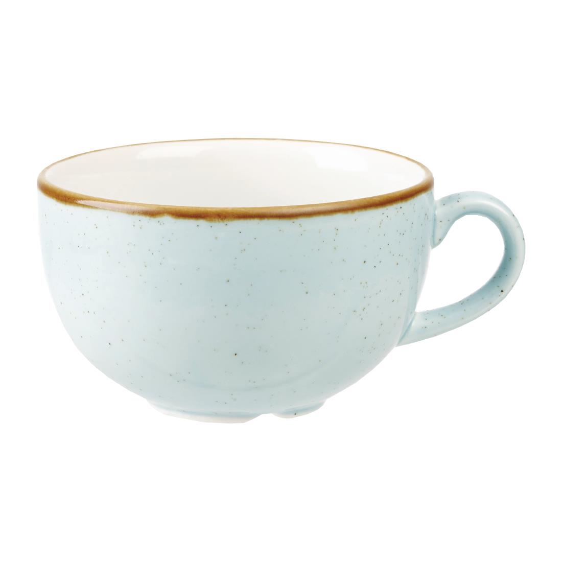 In a duck egg blue colourway, these Stonecast 460ml cappuccino cups beautifully enhance the presentation of your beverages. Made from Churchill’s super vitrified ceramic body and featuring a super-glaze finish, the cups are exceptionally durable, making them ideal for professional environments.