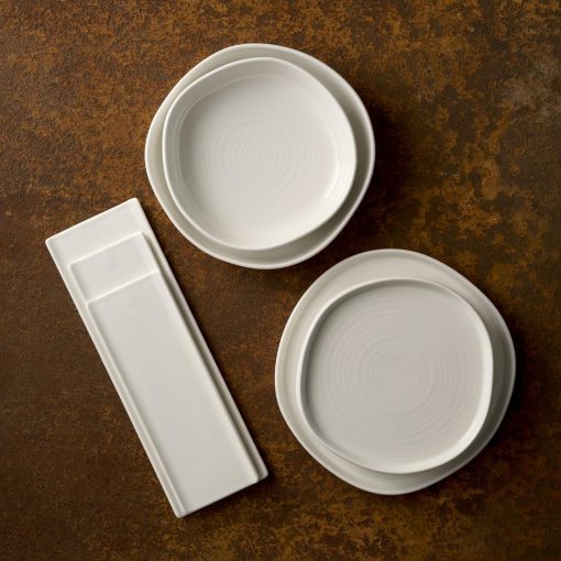 These contemporary walled plates from Churchill provide the perfect canvas for showcasing your culinary creations. Their design features an organic walled edge and a concentric embossment that is reminiscent of hand-thrown pottery.