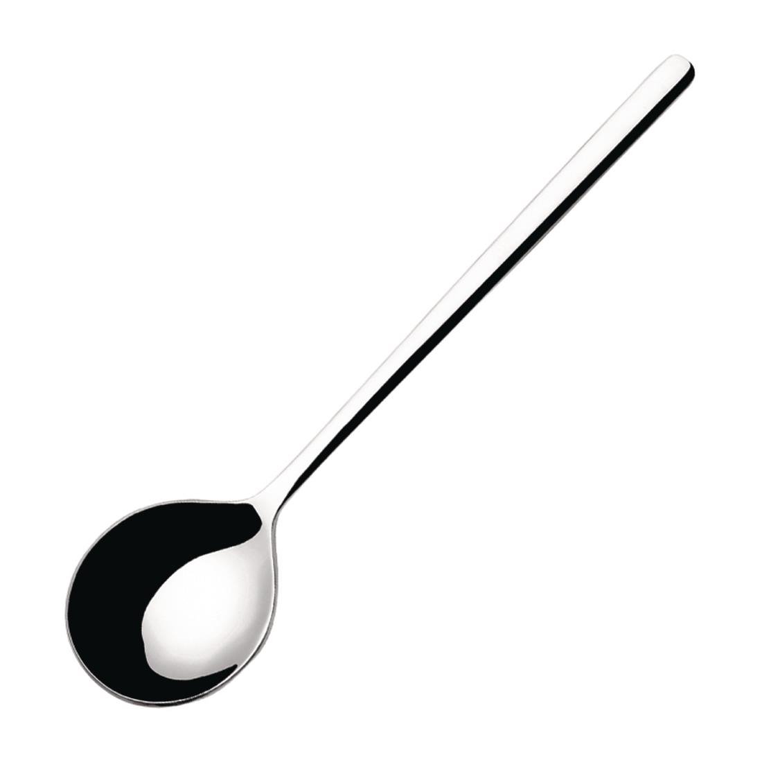The Atlantida collection is fully dishwasher safe, making it ideal for fast-paced commercial kitchens. For best results and to preserve the mirror finish, avoid leaving the spoons to soak, rinse off acidic foods immediately after use, and dry them promptly after the wash cycle.