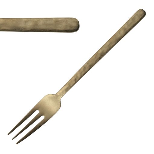 Add a touch of style to any table setting with these two-prong table forks from the Kodai Vintage Gold collection. Made from durable stainless steel, each fork features a soft, embossed handle and a matte stonewash effect that gives it a tactile finish. Supplied in a pack of twelve and dishwasher safe for easy cleaning.