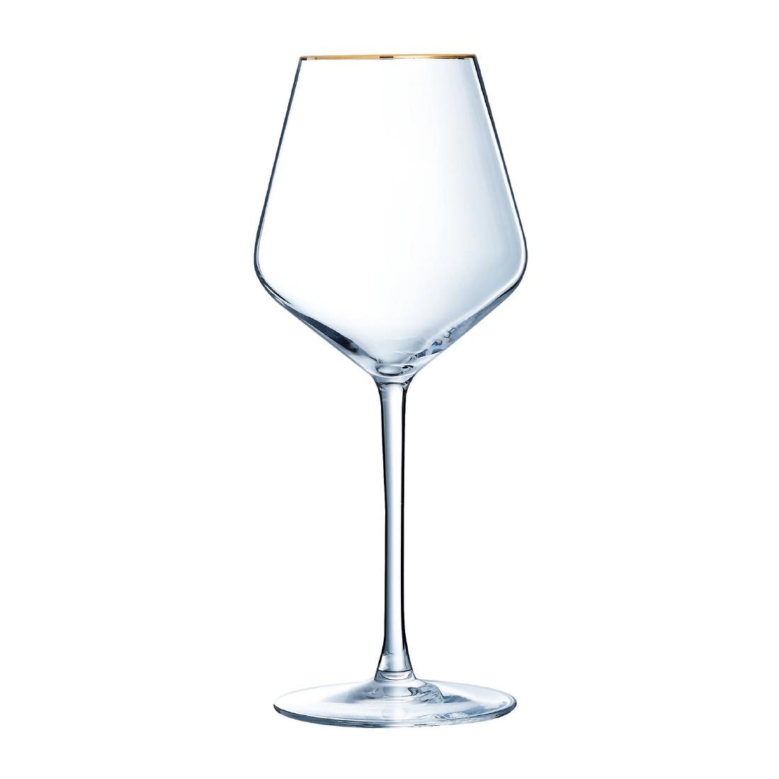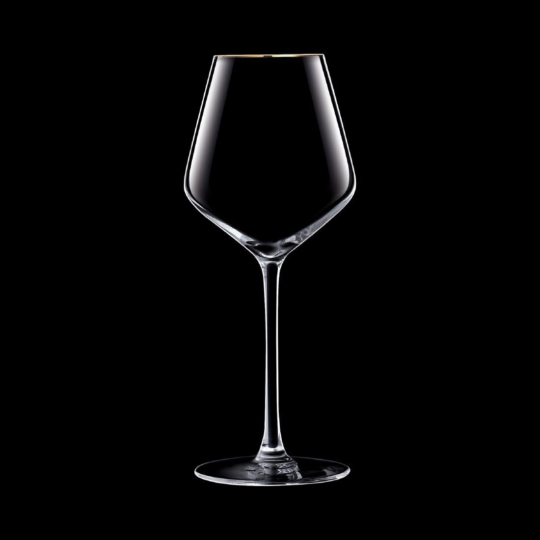 Bringing refined elegance to any table setting, these 470ml wine glasses from Cristal d’Arques’ Ultime Gold Band collection feature a real gold band around the rim. Their slender stem, graceful bowl, and ultra-fine rim enhance each sip, elevating your tasting experience. Crafted from lead-free crystal glass, each piece delivers exceptional brilliance, clarity, and a touch of sparkle. This high-quality crystal not only looks stunning but is also durable, retaining its clarity and shine even with frequent use.