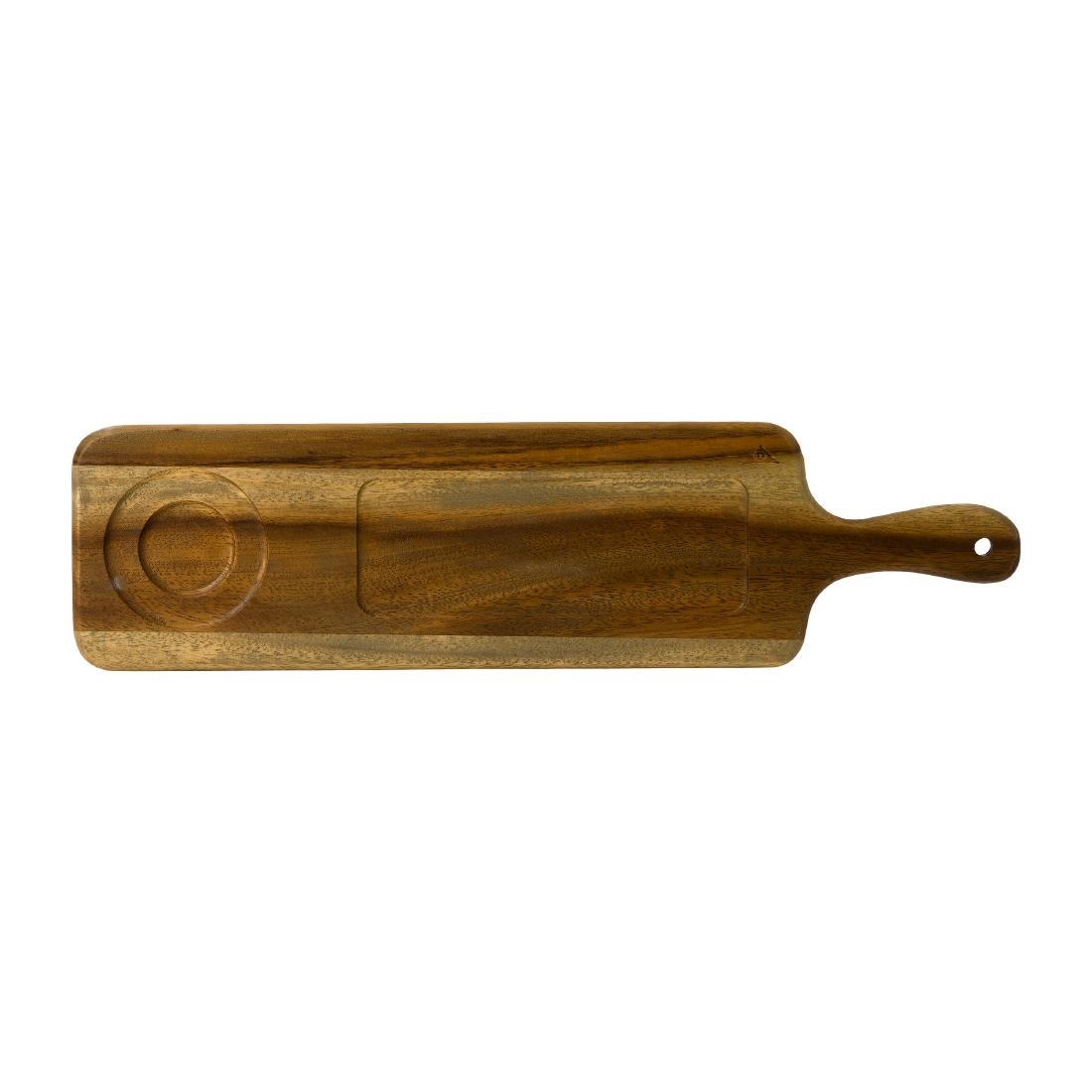 Supplied in a pack of four, this 545x144mm board is food safe and built to withstand regular service, whether for presenting charcuterie, starters or sharing plates in busy commercial environments. The handled design makes it easy to carry and serve, while the warm wood tones add a natural backdrop that enhances the colours and textures of your dishes.