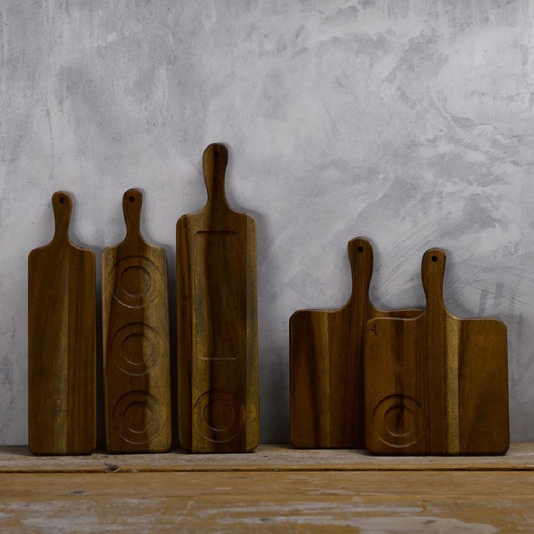 Bring rustic charm to your food presentation with this large rectangular handled serving board from the Dudson Wood collection. Designed to complement the Dudson ceramic portfolio, this handled board is crafted from acacia wood with a subtle surface texture that creates a tactile, rustic effect.