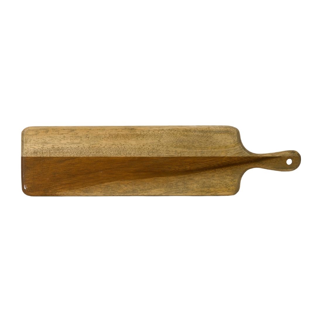 Bring rustic charm to your food presentation with this medium rectangular handled serving board from the Dudson Wood collection. Designed to complement the Dudson ceramic portfolio, this handled board is crafted from acacia wood with a subtle surface texture that creates a tactile, rustic effect.