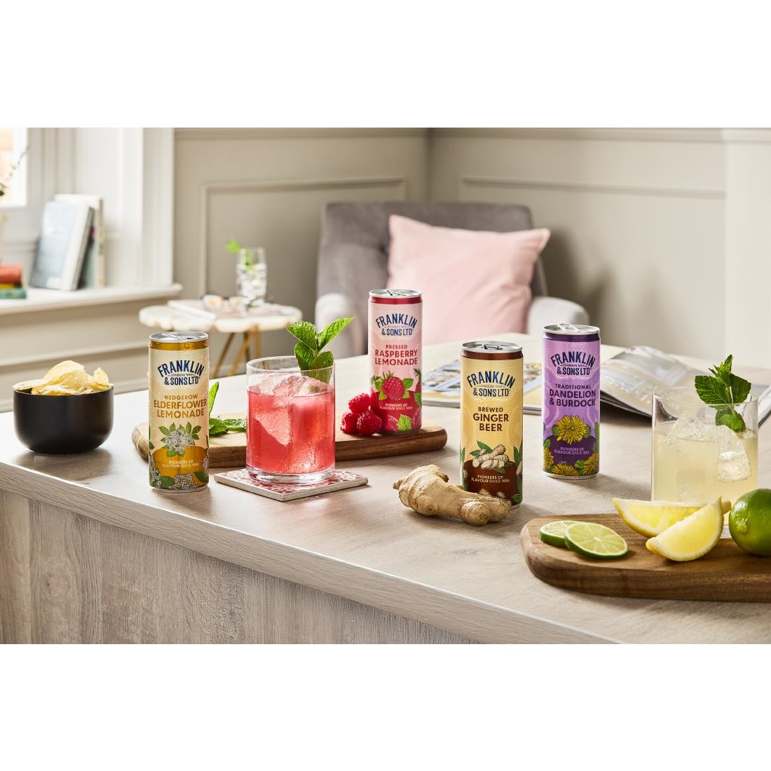 Franklin & Sons Pressed Raspberry Lemonade is made with the finest natural ingredients. Fresh Scottish raspberries, zesty lemon juice and sparkling water are combined to create a refreshing soft drink suited to any occasion.