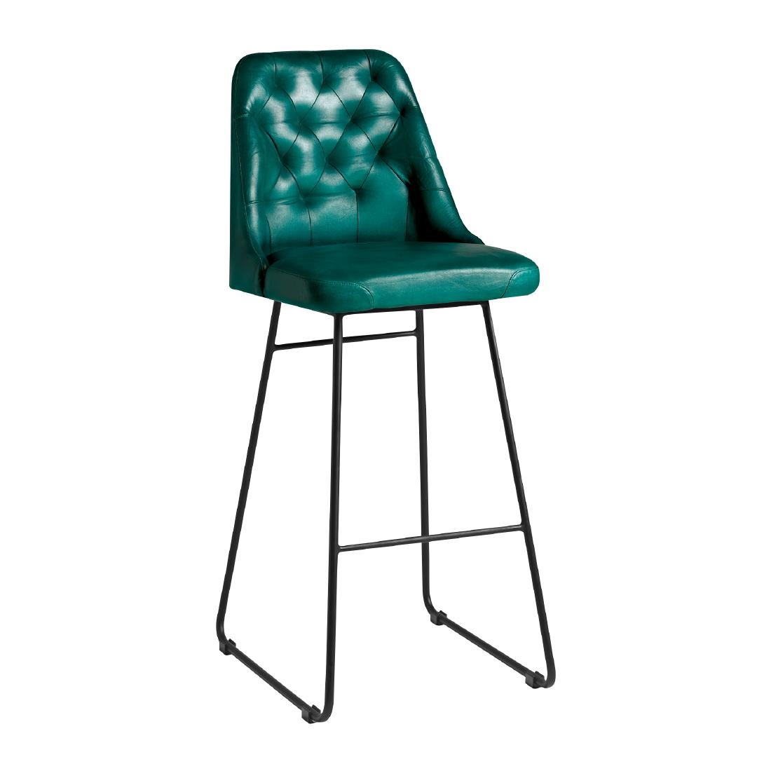 Upholstered in a quilted blue vintage leather, the Harland bar stool is the epitome of retro-industrial cool. Its classic yet chic aesthetic is defined by a sophisticated diamond-stitch pattern, adding a layer of tactile luxury to any bar, restaurant or hotel.
