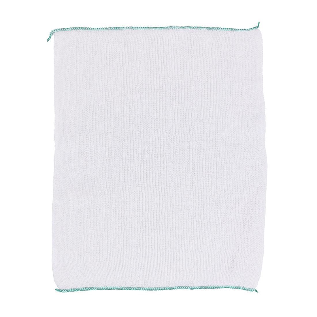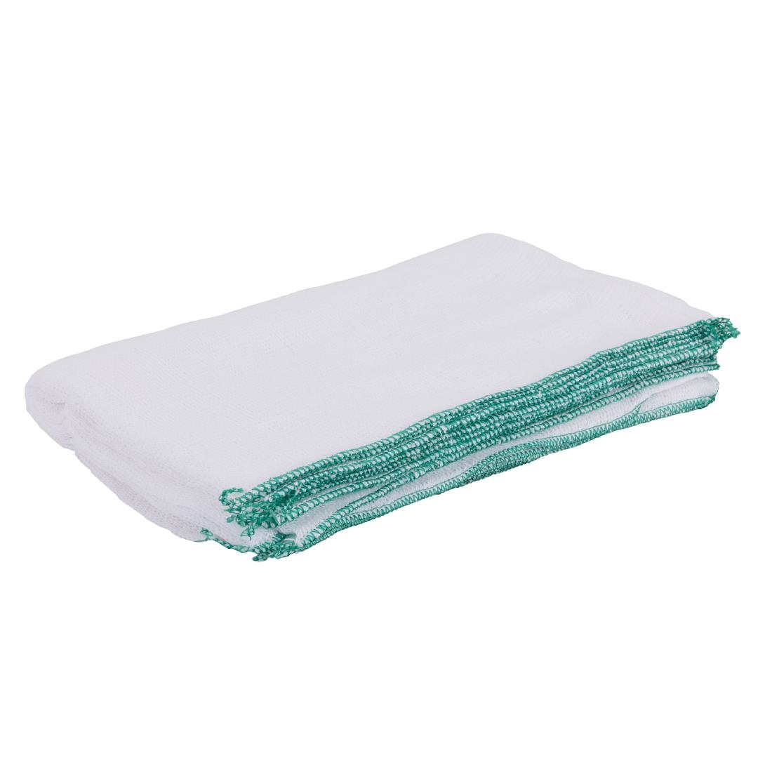 Supplied in a pack of 10, each Jantex 400x300mm dish cloth features a distinct green trim. This colour-coded edging allows for easy equipment segregation, helping to designate cloths for specific zones and reducing the risk of cross-contamination.
