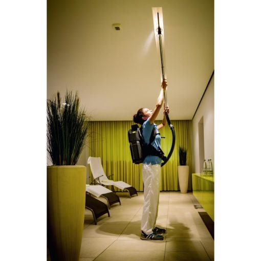 The powerful and long-lasting cordless backpack vacuum BVL 5/1 Bp from Kärcher for cleaning tasks in the narrowest of spaces. The ultra-lightweight, powerful and battery-powered backpack vacuum BVL 5/1 Bp is the first vacuum cleaner which, thanks to the innovative EPP material, weighs only 4.6 kg (carrying weight on the back) and whose material properties make it ultra-robust as well as durable. With an output of 500 watts, a long battery running time and a 5-litre container, the backpack vacuum cleaner is the first choice anywhere where narrow spaces make cleaning tasks difficult – whether in the cinema, in a plane, on buses and trains, for office cleaning or even on stairs.