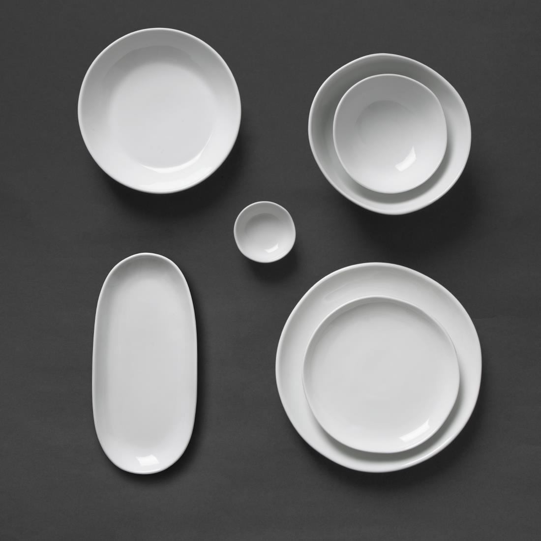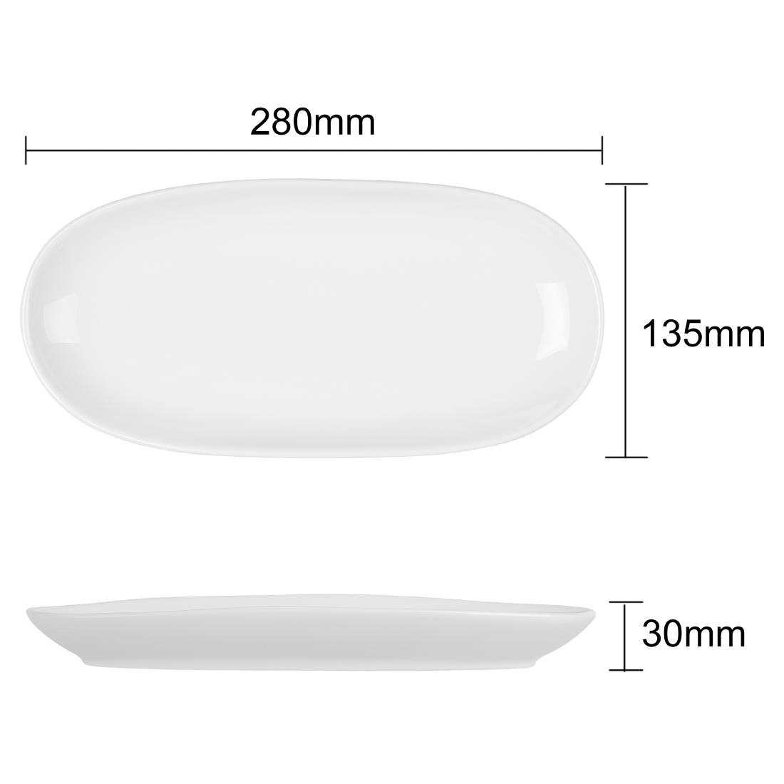Add elegance and versatility to your tableware collection with Olympia’s Chia plates. Part of the popular Chia range, these 280x135mm oval plates feature a white glazed finish, a unique irregular edge and a distinctive, white-painted rim that beautifully frames your food presentation. The artisan reactive glaze ensures each piece has a handcrafted look, bringing rustic charm to any table setting.