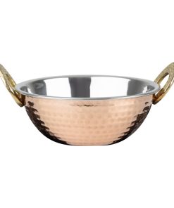 Whether you’re sauteing, frying or serving up a delicious dish, this Olympia Kadai dish is well-suited for the task. Its durable copper and stainless steel construction provides excellent heat retention and distribution, keeping food warm while adding an exotic touch to the table.
