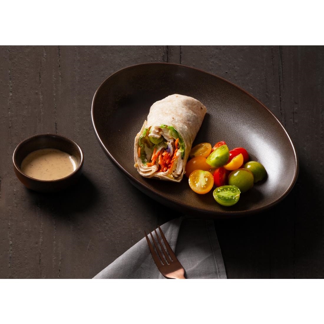 Crafted from durable porcelain, these Olympia Ember oval bowls in mahogany brown are backed by a lifetime edge chip warranty for added strength and long lasting performance. Their stackable design supports efficient storage, while an unglazed foot helps prevent slipping during service.