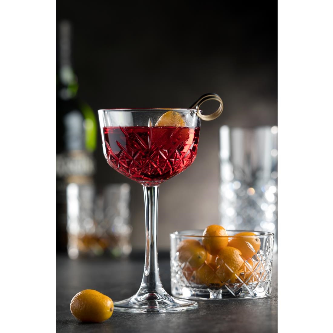 Supplied in a pack of 24, these Timeless Vintage Nick & Nora glasses are fully safe for use in commercial glasswashers. This allows them to be cleaned to a sparkling, smear-free shine quickly and efficiently, eliminating the need for time-consuming manual washing and ensuring a fast turnaround during your busiest service periods.