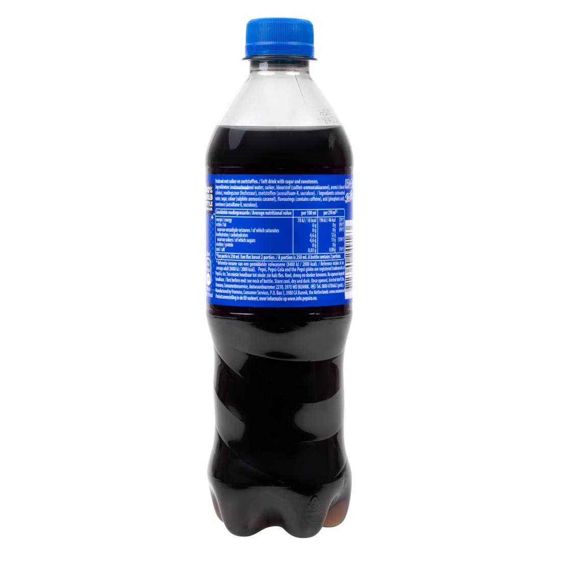 Bold, sweet Pepsi flavour in a convenient 500ml bottle. Pepsi delivers a bold, refreshing take on classic cola. Made with sugar, sweeteners and natural flavourings, it contains caffeine and offers a familiar fizzy refreshment that pairs well with meals or chilled on its own.
