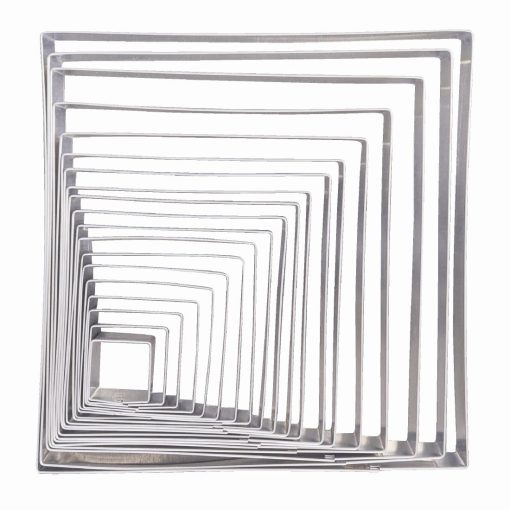 The PME square stainless steel cutters are a must-have in your bakeware cupboard. Perfect for cutting square shapes in dough, marzipan and icing, this pack of 19 cutters has allows you to shape squares of many different sizes. Strong stainless steel is durable and effective, and is design to last a long time – create beautiful squares, time and time again.