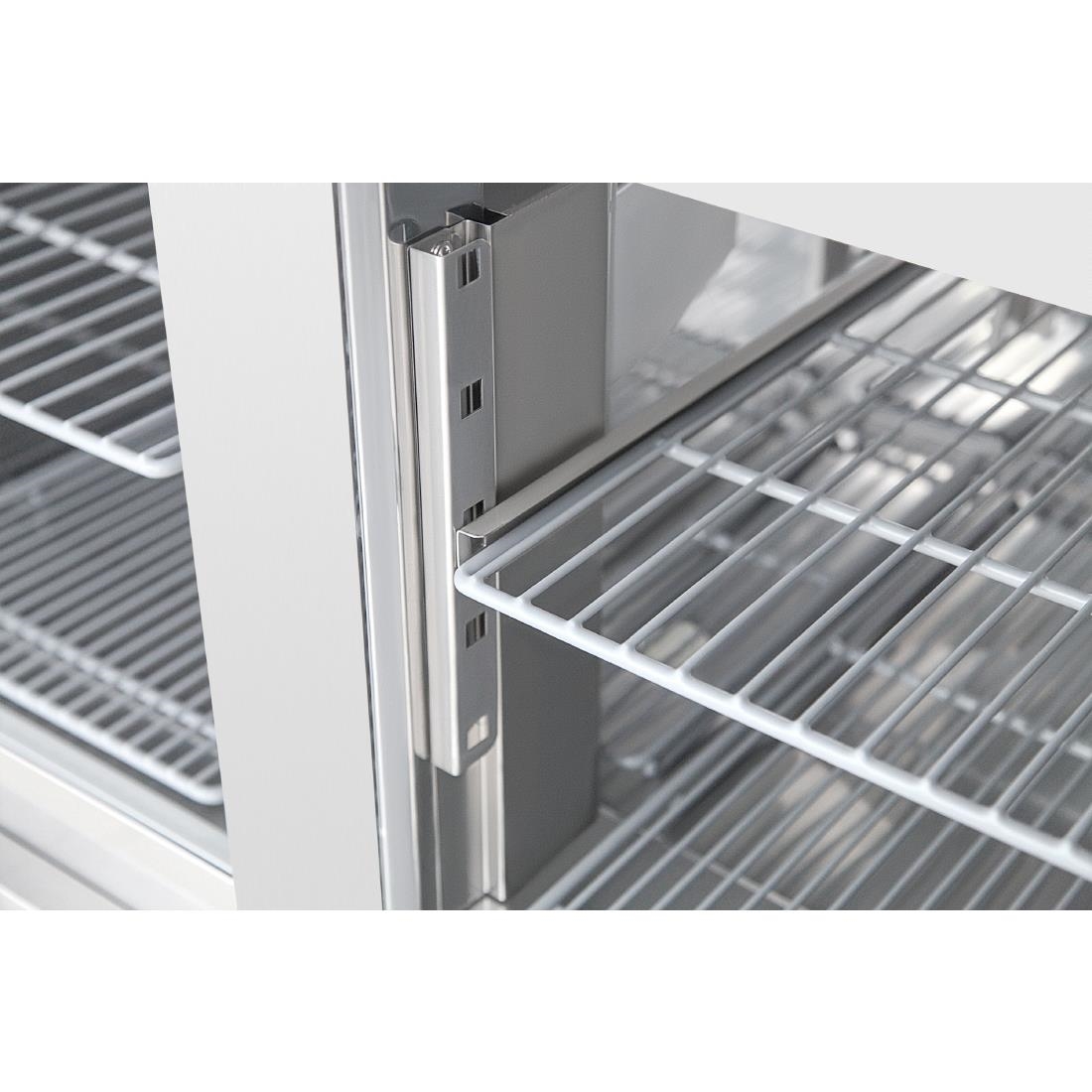 The Polar counter freezer is built for flexibility. Inside, two adjustable shelves allow you to organise your stock efficiently to best suit your menu. For ultimate convenience during busy services, the shelves can be removed to slide in full-size (1/1) gastronorm pans directly (sold separately). User-friendly digital controls and a clear display make temperature management simple and accurate, whilst the front-vented design ensures installation is straightforward.