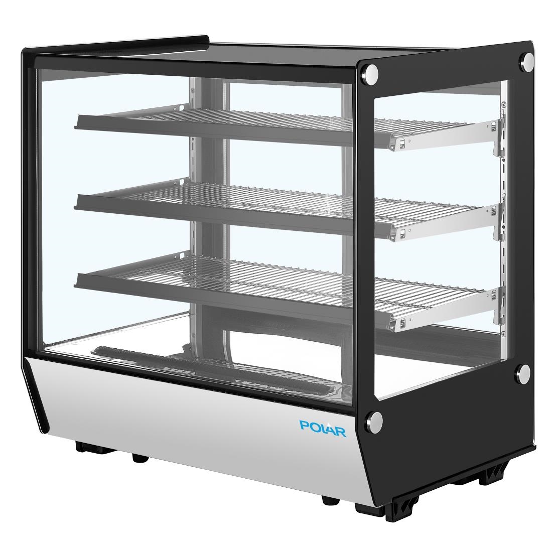 Built for demanding front of house use, the unit combines strong stainless steel and glass construction with a powerful forced air cooling system that delivers even cooling on every shelf. Three adjustable shelves allow flexible merchandising for cakes, snacks and grab-and-go drinks, whilst automatic defrost and sturdy feet help maintain reliable, hassle-free performance. With its compact 886mm wide footprint, the Polar countertop display fridge maximises display space and drives sales throughout the day.