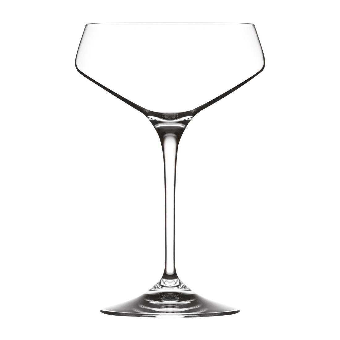 Designed for the finest table settings, Aria by RCR Cristalleria is the top range from the RCR Collection. These Aria champagne saucers are impressively shock resistant thanks to the high-density of Eco-Crystal. The design of the glass angles inward from its widest point, indicating the right level of wine to be poured, while the wide cone-shaped bowl of the glass allows you to appreciate the gradations of colour at its very best.