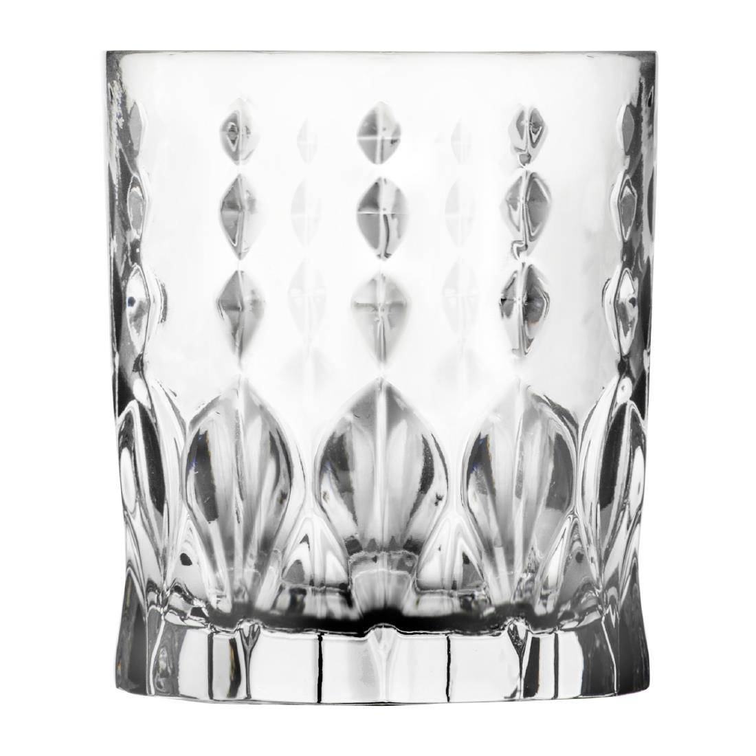 Marilyn Monroe once sang, “Diamonds are a girl’s best friend,” and these RCR Cristalleria double old fashioned tumblers feature a design that creates a cascade of light, adding a touch of elegance to the dining experience.