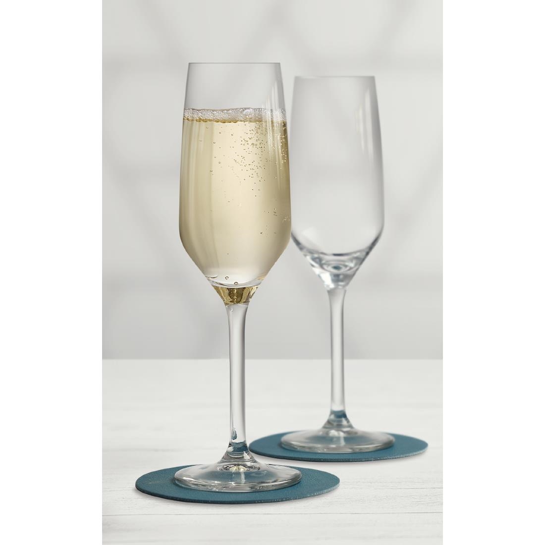 Despite this delicate feel, these Royal Leerdam Regis flutes remain remarkably practical and are fully dishwasher safe, allowing for quick turnover and easy cleaning during busy shifts.