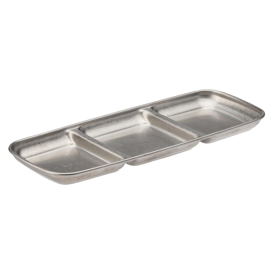 Utopia’s Artemis triple dip trays feature a durable stainless steel construction combined with a distinct rumbled finish. This blend of material robustness and unique surface treatment delivers a touch of contemporary sophistication to your dining experience, moving beyond standard polished tableware.