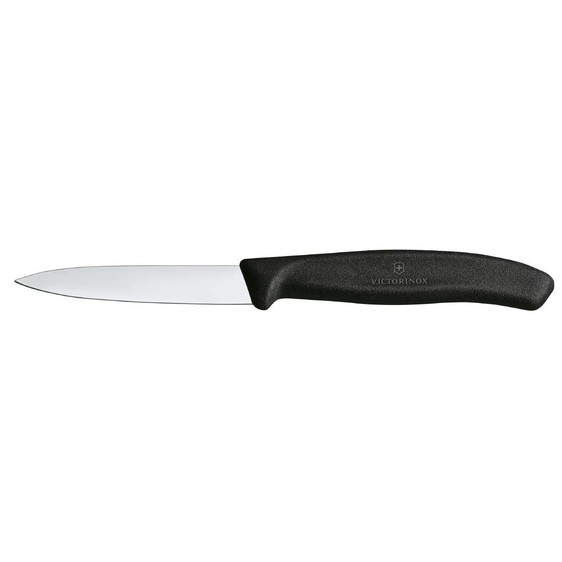 Precision, balance and reliability defines the Victorinox Swiss classic paring knife. Sold in a pack of two knives, each lightweight knife features a high-quality Swiss-made stainless steel blade with a straight edge and pointed tip, delivering clean cuts for peeling, trimming, coring and intricate garnish work. From apples and potatoes to shallots and herbs, accurate prep becomes faster and more consistent, helping reduce waste and speed up mise en place across busy professional areas.
