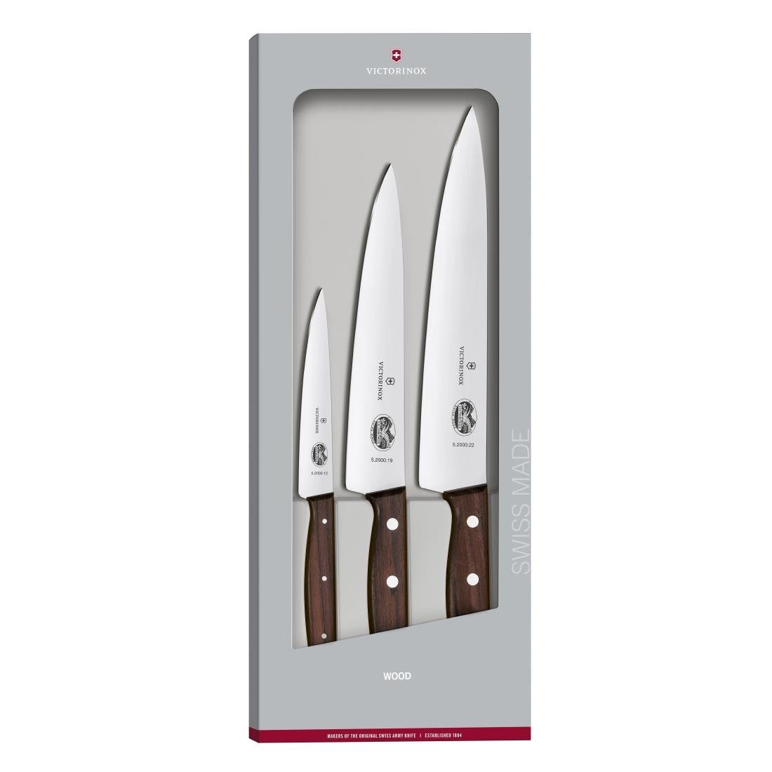 Chop, slice and carve all kinds of ingredients effortlessly with Victorinox’s three-piece wooden chef’s set. The set includes two carving knives with respective lengths of 19cm and 22cm – these can easily cut through cooked and grilled meat, as well as larger fruits and vegetables such as melons and cabbages. Complementing these is a 12cm kitchen knife, which is ideal for chopping smaller ingredients or precisely filleting meat or fish.