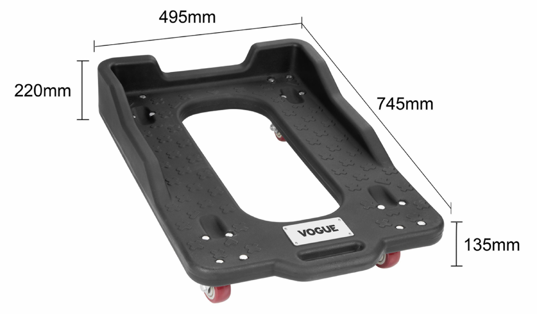 Two fixed and two swivel castors provide smooth mobility and accurate manoeuvring, even when fully loaded and working through tight corridors or lifts. Compatibility with Vogue insulated boxes ensures stable, secure stacking, whilst the space-saving design stores neatly between services. Choose the Vogue dolly to speed up changeovers, protect equipment and keep catering logistics moving efficiently.